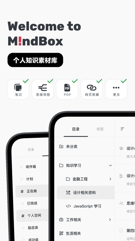 ※ 简单容易上手:同时因为深入人心的文件夹 → 文件的概念,相比起很多知识管理软件的庞大理论概念,Mindbox 更简单容易上手,开箱即用。