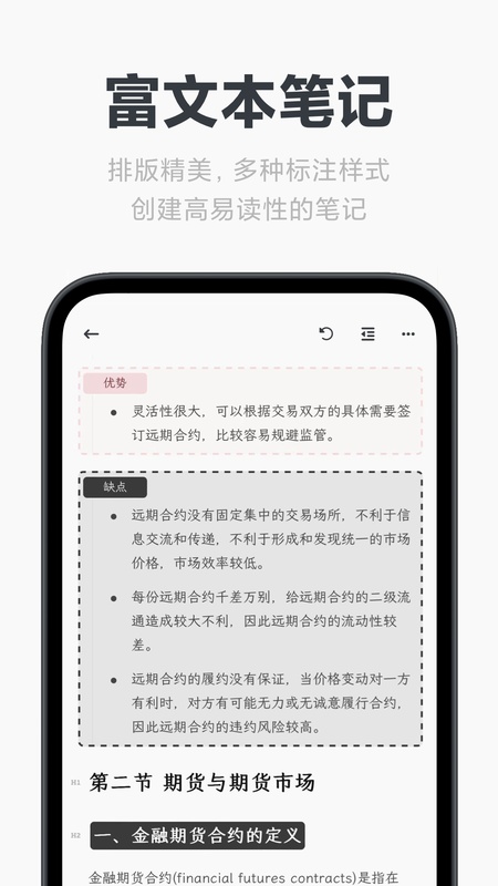 结构清晰,通过树状的文件夹目录能构建有条理性的知识脉络,标签管理更增添了内容组织的灵活性。支持多种知识模块,可满足用户多样化的知识记录需求,呈现碎片化知识管理特色。简单容易上手,基于深入人心的文件夹→文件概念,相比很多知识管理软件的庞大理论概念,它开箱即用。全平台支持且搭载云同步功能,方便用户在不同设备上使用。在数据存储上坚持本地存储优先,让用户不用担心资料丢失问题。
