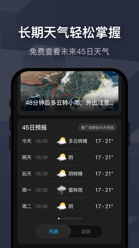 预报精确、及时,使用简单、便捷,风格优美。能更快速、更便捷地为用户的生活出行保驾护航。