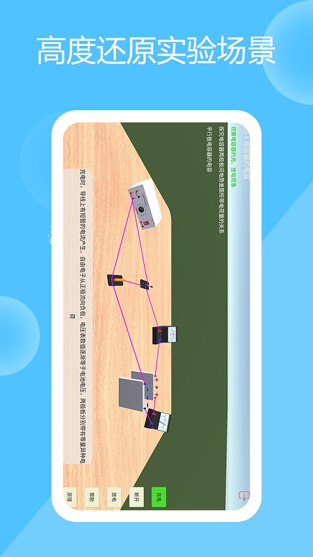 高中物理实验App高度复现高中物理课本中的实验场景,为用户提供3D的实验演练环境。实验中具备不同情景下的操作演示,详细展示实验的具体操作步骤。同时还有原理说明,帮助用户深入理解实验背后的物理原理,以及器材结构介绍,让用户清楚了解实验所使用的器材。用户既能够依照课本来学习实验,也可以通过实验来梳理课本知识。