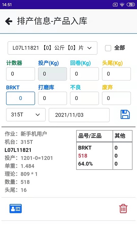 本引用适用于汽车零配件生产工厂企业,包含冲压,焊接,组装等生产线生产数据的处理。根据客户订单,计算各个工序上的加工需求,保证原材料库存量以及产品数量来保证交货期内的产品数量。本程序,主要作用是现场输入加工数据,并打印出标签。 软件功能