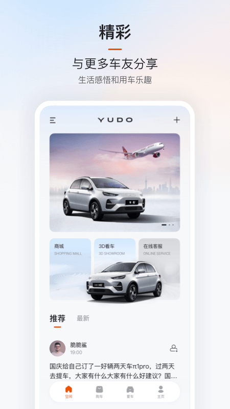 2、社区交流:官方带您全方位了解云度汽车各车型及产品科技,车友共同交流,线上线下组织活动,让您购车后的生活更加丰富多彩。同时还有更多车主及工程师在线解答用车问题。