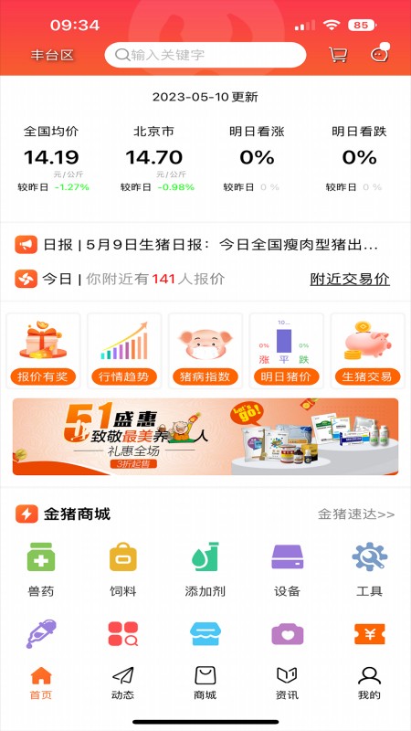 设有金猪商城,涵盖兽药、饲料、设备且有天天秒杀活动。