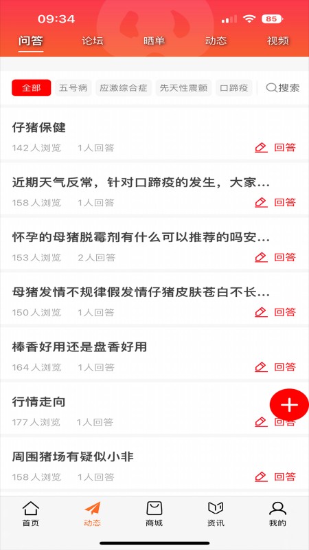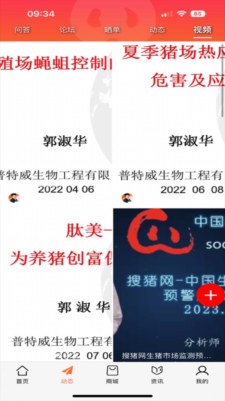 拥有养猪家园,可进行技术问答、观看小视频和交流养猪经验。
