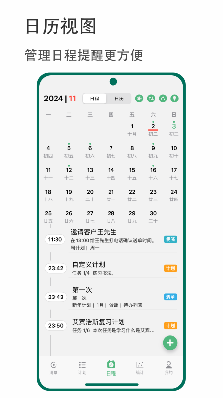 日程功能上,有日历视图让日程一目了然,还有时间轴将清单、计划有机统一。