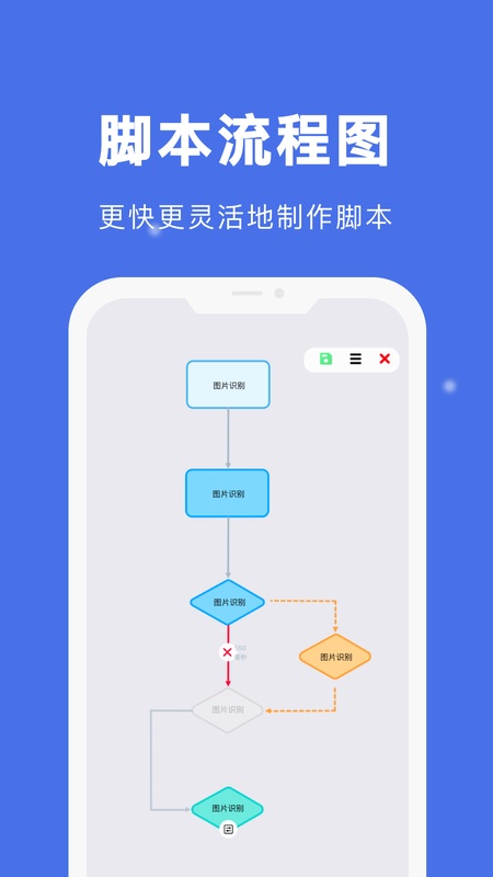 功能包括:定时自动执行、消息触发执行、图片识别、文字识别、滑动轨迹、流程图编辑等等。 应用功能
