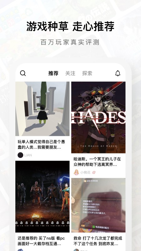 轻松发现好游戏,有海量玩家的真实游戏评测与游戏推荐,视频图文详实有趣,能获得客观、中肯的游戏评价,种草适合的好游戏。