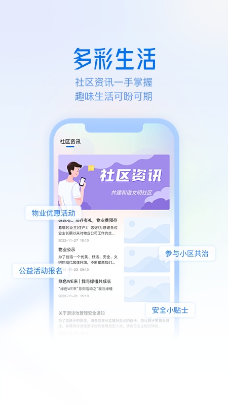 慧生活Life APP是慧生活云平台的移动客户端,具备智慧家居和智慧社区等功能。在智慧社区方面,可与物业管家、门禁设备进行可视云对讲;能管理人脸,支持人脸开门、二维码开门、一键开门等门禁通行方式;实现车辆管理、来访审核等自主登记功能;还提供投诉、保修等物业服务功能。在智慧家居方面,可在手机上添加智能家电,控制设备、查看设备实时状态、接收设备报警消息,以及配置情景、自动化等。