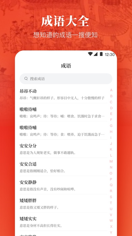 【成语】:拥有海量成语词库,支持一键搜索查询。