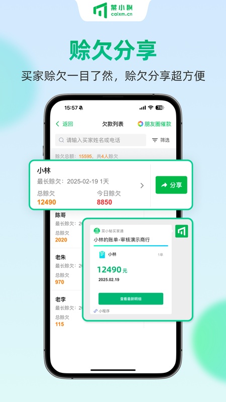 众多用户真实反馈显示,使用菜小秘后伙计离职交接不再混乱,客户自己看账单使纠纷电话大幅减少,能切实帮助农批商户解决实际问题。