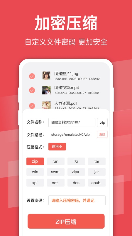 此应用基于手机平台,让用户可以随时随地进行文件压缩和解压缩操作,无需依赖电脑等设备。能够导入多种类型的文件进行处理,大大提升了文件处理的灵活性。支持大文件直接解压缩,解决了用户在处理大文件时的困扰。对压缩文件进行加密,保障了用户文件的安全性。并且提供分享功能,方便用户与他人共享文件。还具备完善的文件管理功能,如重命名、移动、删除等,满足了用户对文件管理的多种需求。