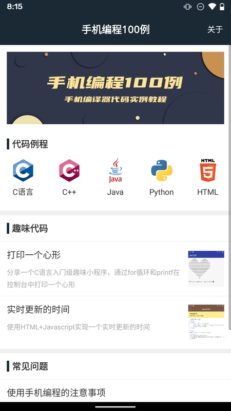 专为手机编译器打造实例教程,方便在手机端学习编程。