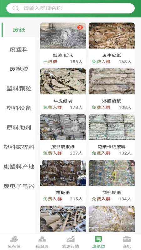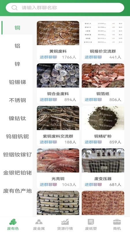 该APP拥有上千种再生行业废料交流群,每个群聊可容纳6000人在线实时沟通,群聊分类全面覆盖再生废料行业细分领域,且群聊板块中有免费群聊,用户可免费进群沟通交流。