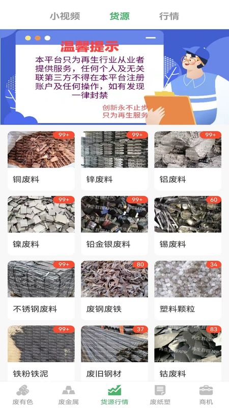 再生群聊APP是一款移动通信类APP,集再生废料群聊、货源供求、行情分析、行业资讯、商机服务等板块于一体。用户下载后可永久免费查看废金属、有色金属、稀贵金属、钢材、纸塑、橡胶、矿产等几十个品种的行情报价及资讯,还能免费查看货源详情、发布商机资讯。