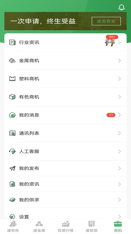 在货源供求板块,细分每一种再生行业废料类目,方便用户快速选择并锁定货源供求信息,最大程度保障用户线下货物的洽谈交易及线下货物成交转化率。商机服务板块,用户可根据自身推广及需求进行相关板块的操作应用。