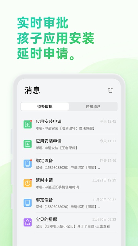 随时查看孩子手机使用详情记录,帮助家长更好的了解孩子使用情况。深入了解,针对性沟通