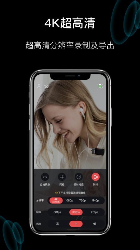PRO专业模式为专业的音视频拍摄者而生,搭配塞宾硬件设备,可实现更专业的参数调节。