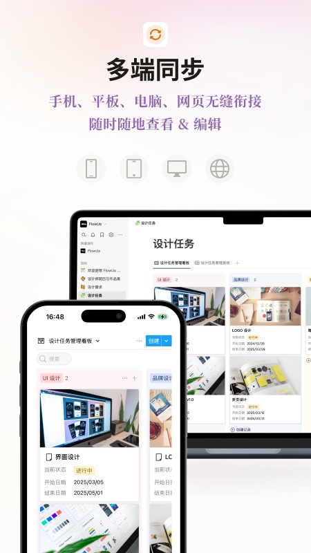 - 手机、平板、电脑、网页多端实时同步,云端保存,随时查看、编辑,无缝衔接