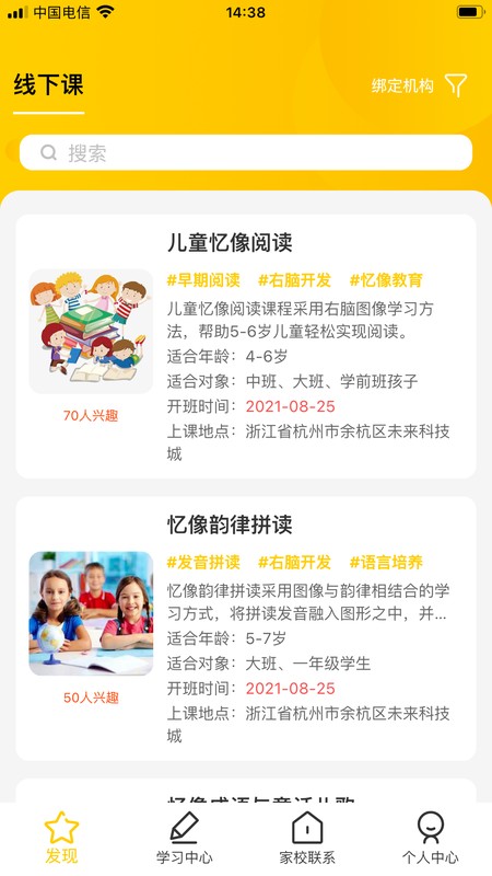 家长可在忆像有爱APP浏览各地忆像教育培训机构的最新课程,并能在线下单。还能查看课程安排、学业进度、宝贝任务、成长空间、班级留言等内容。同时,可通过该APP与老师、同学进行互动交流。