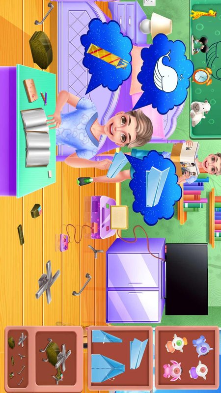 游戏高度还原了姐弟斗智斗勇的日常场景,充满生活气息和趣味性。每个场景都设置了防止对方捣乱的任务,增加了游戏的紧张感和挑战性。场景丰富多样,从客厅到卧室再到厨房,最后到换装拍照,不同场景有着不同的玩法和任务,能让玩家充分体验多样化的游戏乐趣。