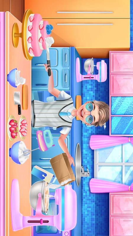 3.厨房制作草莓蛋糕,防止另外一个过来故意捣乱