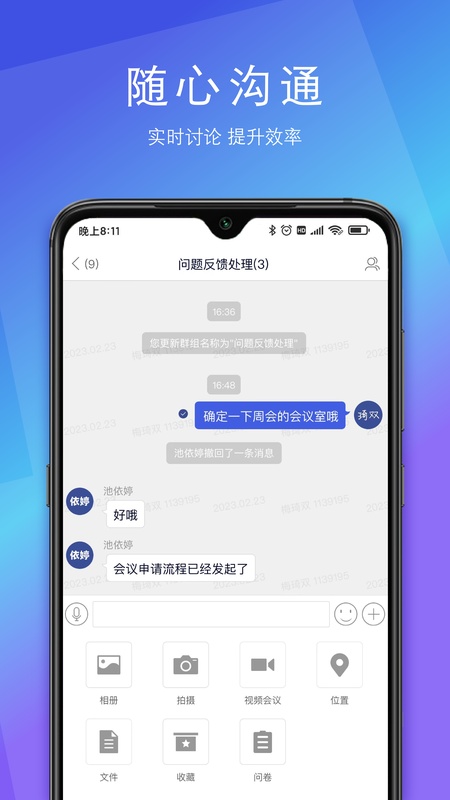 提供即时文字/语音通讯功能,方便用户在移动办公时进行高效沟通。具备日程与任务功能,可帮助用户合理安排工作时间和任务。支持查看公司最新资讯,让用户及时了解公司动态。还有Biu、引用、表情回复等多种富有个性又实用的功能。