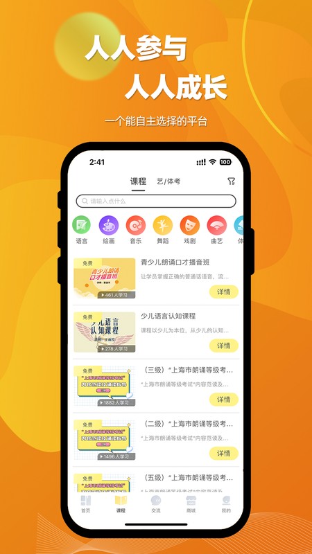 家长可选购文学、绘画、音乐、舞蹈、戏剧、曲艺、棋牌、体育类别的线上课程,突破时空限制学习。