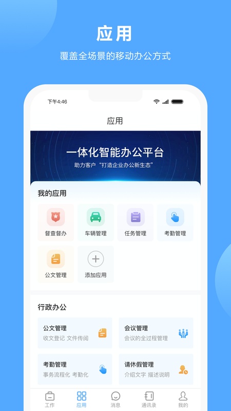 产品中心聚焦政务办公、智慧协同、信创OA、门户集成、移动办公、智能流程等,让工作更便捷、更高效、更智慧,助力客户打造企业办公新生态。 应用功能