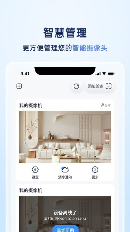 智能安防:利用人形检测、运动检测、运动追踪等先进技术,将异常事件记录成事件,并以消息的形式及时推送给用户,方便用户随时查看,保障家庭安全。