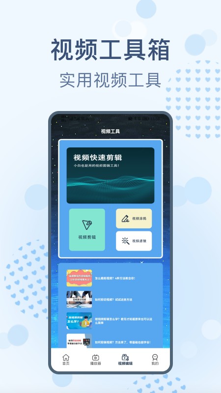 支持图片、视频添加和去除水印,具备图片、视频压缩功能,可进行视频剪辑、涂鸦以及添加视频滤镜,还提供各种剪辑教学以及海量热门影视资料资讯。