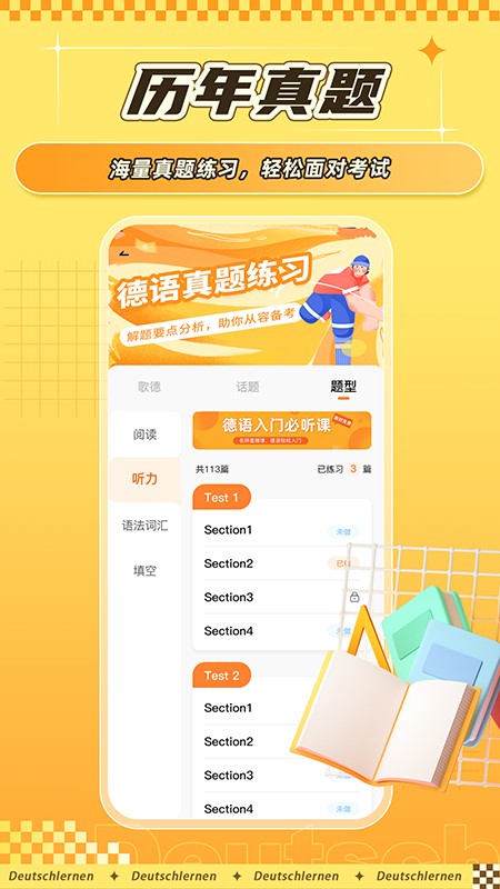 《德语GO》是学习德语必备软件,有每日一练,搭配A1 - DAF/DSH的词汇记忆工具,适合德语零基础学习者。