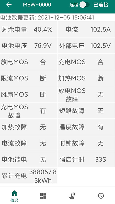 通过蓝牙方式连接妙益智能锂电池,实现数据传输,电池控制等功能 软件特点