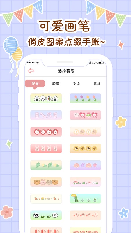 提供丰富的手帐画笔(曲线)、手帐胶带(直线)、各种荧光笔、图形笔等手帐排版得力助手,支持用户做出更好排版的手账和笔记。
