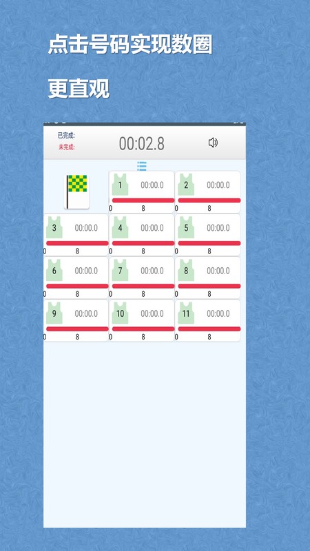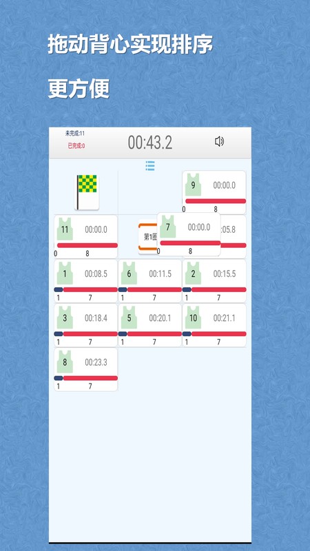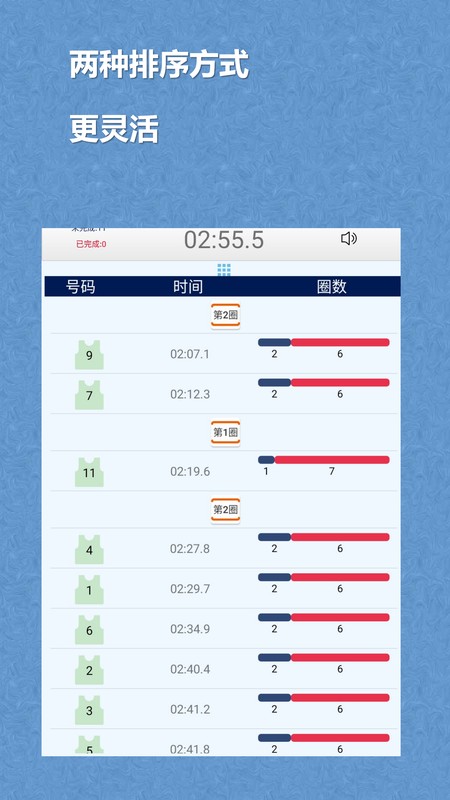 能自动记录参加测试人员每一圈的成绩,还可按照速度快慢进行自动排序。