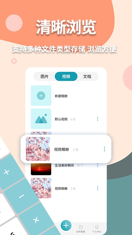伪装计算器具备多种实用功能。它可以对文件进行加密,支持添加不同文件夹分类,能添加本地照片、视频、文档进行加密处理,并且视频和图片可直接在app中播放;设有密码本,能添加保存各类账号密码,如qq、微信、微博、邮箱等,对账号密码进行智能管理,且所有账号密码只存储在手机本地,不上传第三方服务器;还有记事本功能,可添加备忘录来记录文字信息;在文件管理方面,有一目了然的分类,能一键获取手机本地相册,让上传图片、视频、文档更方便,还能显示本地内存和加密内存,方便随时查看剩余内存。