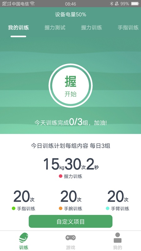 灵谷优优智能握力器可通过自研智能芯片将握力数据实时传输至APP,并结合训练计划、体感游戏、宣教知识等丰富功能,提升趣味性和依从性,有效帮助相关患者人群完成握力康复训练,同时更方便大众人群进行握力锻炼。 软件功能