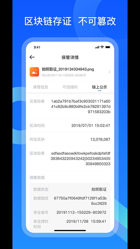 证据保是由湖南天河文链科技有限公司基于区块链技术打造的证据保全平台,目前已与多个公证处达成深度合作。它是一款提供电子证据在线实时取证、存证、保管与公证一体化服务的“区块链+公证”应用 APP,发挥“技术公信力 +公证公信力”的双重增信作用,广泛应用于知识产权保护、互联网金融、电子商务以及各类侵权、合同纠纷、民商事诉讼领域,为当事人提供更便捷的证据保全公证服务。 APP功能