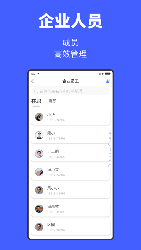企业人员:支持企业员工及项目工人信息查看及权限管理