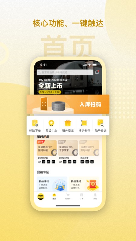 赢在一起app为用户提供在线采购功能,让佳通零售门店可以便捷地进行轮胎等产品的采购。同时具备扫码入库功能,能快速准确地完成商品入库操作。还有O2O模式接单功能,可帮助门店接收线上订单,拓展业务渠道。