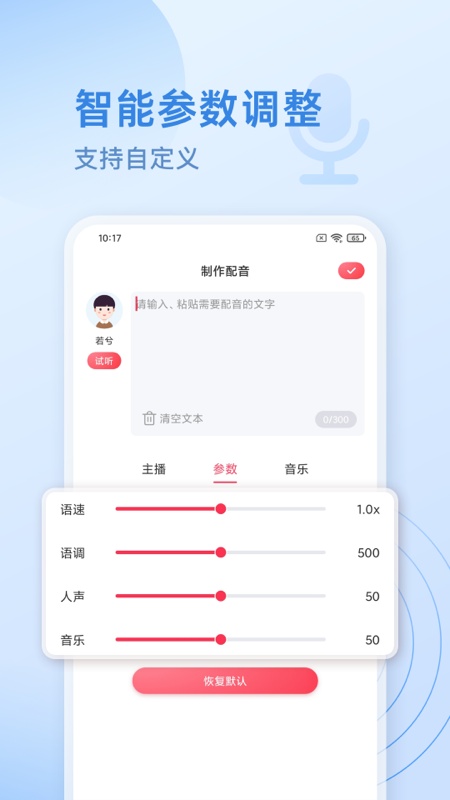 超多虚拟主播:有男声、女声、童声、特色方言等,还支持调节音量、语速和语调。