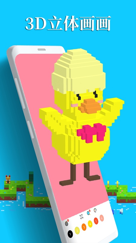 用户体验时,通过图片中的数字去填充着色,匹配颜色和空白格中的数字。依据每个方格内的数字,将相应的色彩填色即可。用户可从众多3D模型图片中挑选喜欢的进行填色创作。