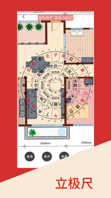 2.重制高清盘面,多种盘面任意切换,结合实景背景。轻松分析房屋方位,比如大门,卫生间,卧室,阳台等具体方位。
