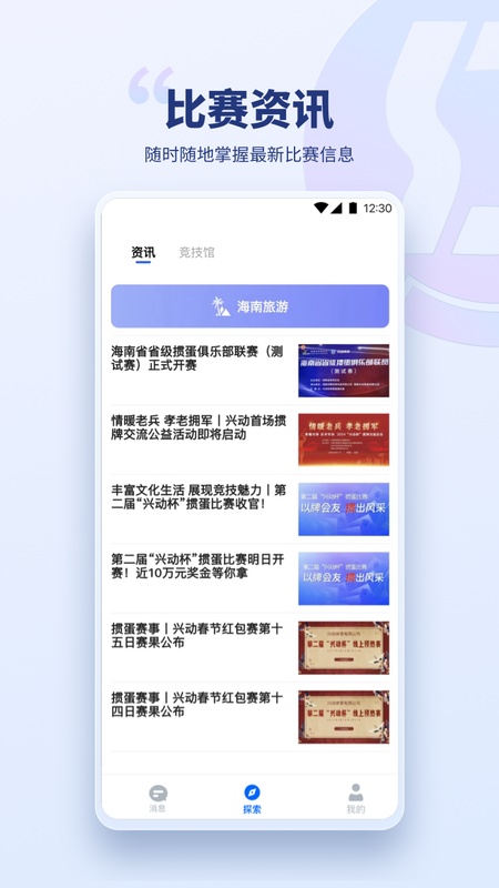该软件为用户提供专业的赛事资讯,让用户及时了解各类赛事动态。还具备社交交友功能,方便用户结识志同道合的朋友。此外,提供海南旅游相关信息,帮助用户规划海南之旅,同时售卖海南当地特产,满足用户的购物需求。