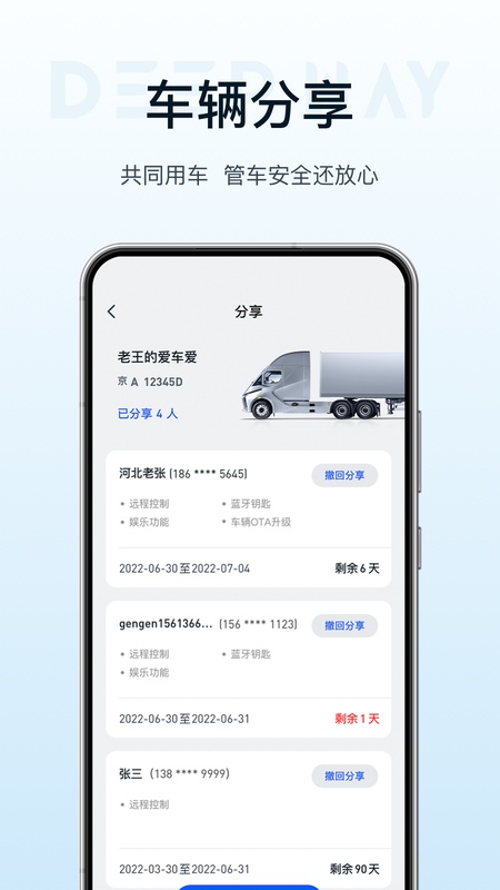省去线下物理钥匙的传递,随时随地线上分享车辆,让车主管车更加轻松,司机用车更加安全。