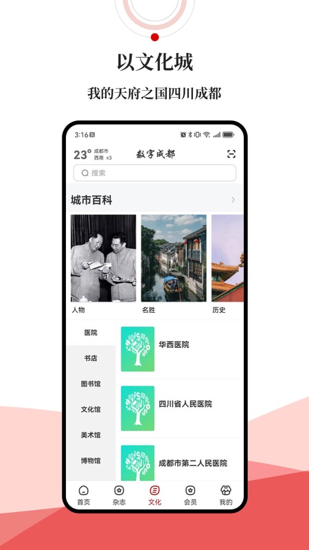 数字成都客户端以数字阅读为主,为喜欢巴适生活的成都人打造知识服务。它涵盖成都最新购房直接落户等资讯,同时展现成都发达的高新技术产业和休闲文化。客户端内有名刊汇聚名刊会,以信息流风格呈现内容,与人民日报、学习强国、中国新闻周刊、财经杂志、第一财经集团、南风窗、读书、智族GQ、海外文摘、ELLE世界时装之苑等众多品牌杂志出版机构和报业报刊发行集团以及城市观察家合作,注入内容版权数据主流,打造优质内容智能推荐的用户体验。