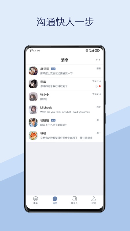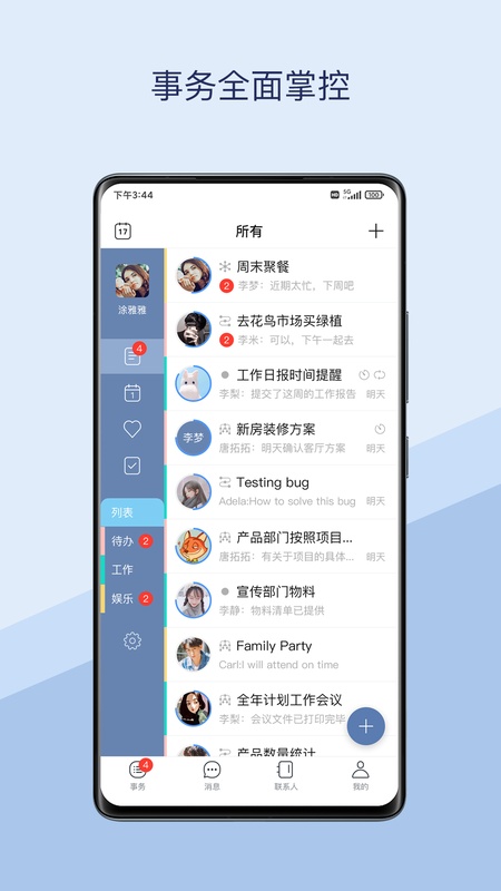快叮事务管理APP软件对于团队而言,自上而下,每个人在每个环节完成自己的任务后事务发起人即可了解到整个事务的所有进程。对于事务截止时间的设定可以提醒事务关键人向前推进事务的顺利完成 应用功能