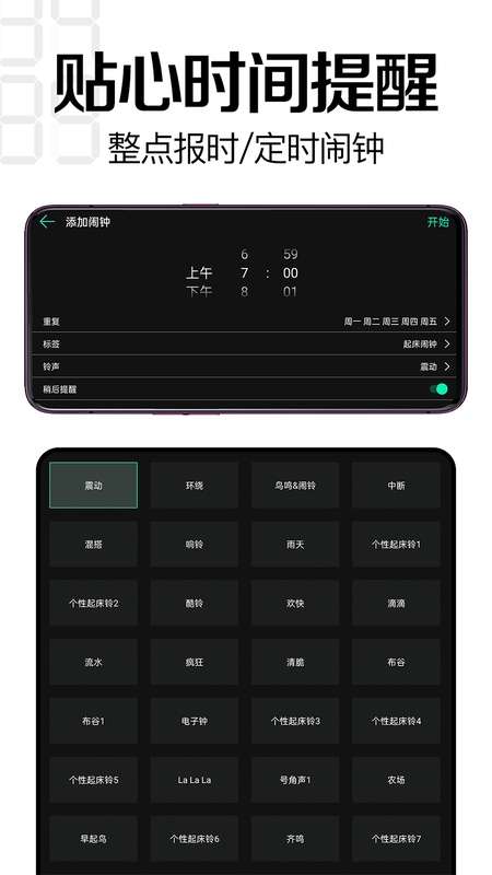 ▲整点报时▲个性铃声音乐▲毫秒显示▲个性语录