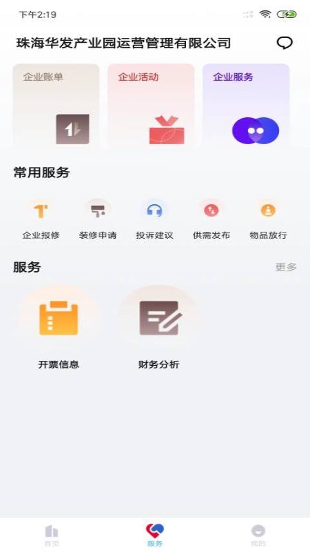 华发V+聚集华发旗下及外部的各类办公、生活、商旅、餐饮及采购服务资源,致力于打造华发产业园智慧化生态。为企业提供园区入驻、物业维修、会议室及场馆预定、党群服务、产业协同、在线缴费等一站式服务,为公众提供园区出行、食堂餐饮、停车服务、无感同行等舒适园区体验。 功能特色