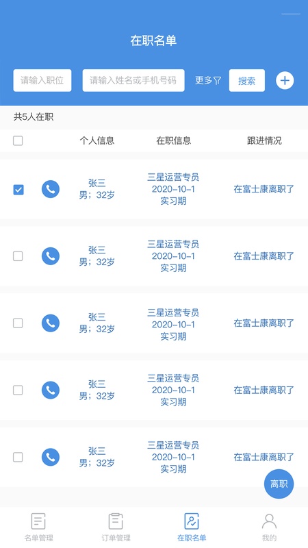 用户首先在移动端打开工作来了系统,进行会员(求职者)信息录入,将相关信息准确无误地填写完整。接着可以发布招聘订单,详细描述招聘岗位、要求等信息。在招聘过程中,可对在职名单进行管理,及时更新人员状态。同时对招聘周期进行管理,把控招聘进度,利用其与电脑端系统数据实时同步的特点,在电脑端也能随时获取最新信息。