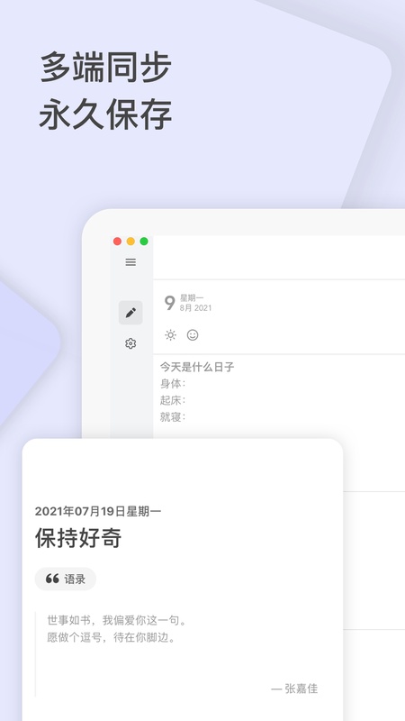 写日记很多时候不在于写下的那一瞬间,而在于日后拿出来回忆的时候,曾经的酸甜苦辣瞬间跃然纸上,或会心一笑,或不禁落泪,我们最终都能够与自己和解。反思日记通过多维度的标签、心情、天气、标题、去年今日等方式,你可以很快的找到回忆。